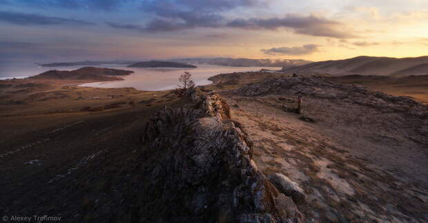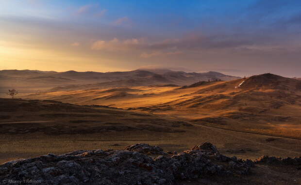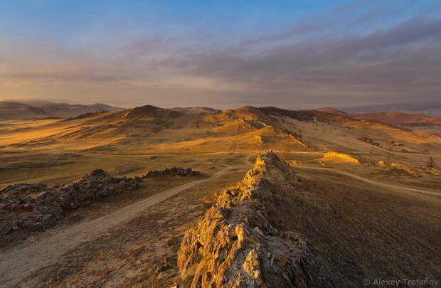 Несмотря на степную суровость, Тажераны красивы круглый год. Но мое любимое время - поздняя осень. Когда солнце уже не влетает в зенит, а быстро проходит невысоко от горизонта, украшая Тажеранскую степь рисунком теней, с полутонами и нюансами оттенков степной охры, превращая зубцы останцев в настоящий гребень древнего дракона, охраняющего, с начала времен, жилище Бурхана - священный остров Ольхон.