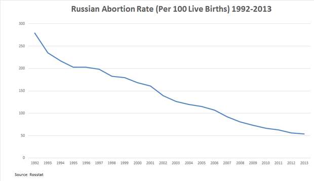“В действительности число абортов в России за последние 20 лет резко сократилось, а показатели по использованию противозачаточных средств постепенно (хотя и слишком медленно) сближаются с западными нормами”, - пишет Адоманис.