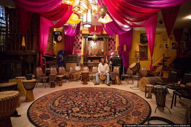 26 Эд называет помещение “круглой комнатой”, хотя она вполне прямоугольна. Скорее, он имеет в виду значение “комната Круга”. Бывшее помещение для дизель-генераторов переоборудовали в место сбора гостей. Посвящённых гостей. Иногда, рассказывает Эд, здесь собирается 20-25 человек. Мы играем на барабанах, трещотках и флейтах, общаемся, разговариваем.