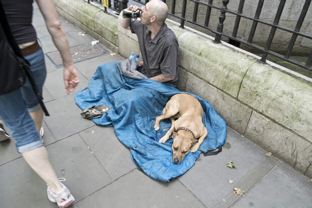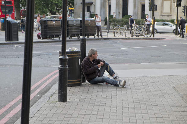А вот ещё одна категория коренных европейцев, они лазают по помойкам или просто просят милостыню.