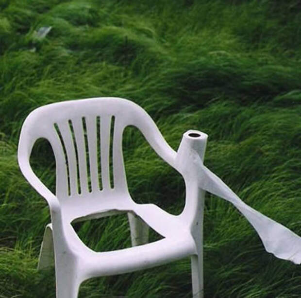 Наверняка автором этого оригинального «стула» является ленивый фермер, которому лень удобрять своё поле традиционными способами. Похоже для того, чтобы в очередной раз удобрить своу участок, ему необходимо просто передвинуть это устройство ногой и снять штаны..)