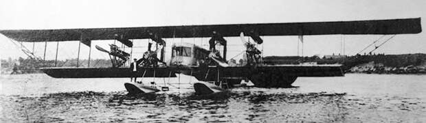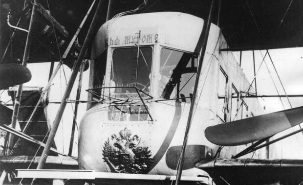 Первый "Муромец" на поплавковом шасси во время испытаний в Финском заливе.