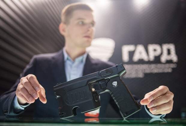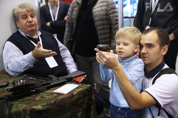 Посетители у учебно-тренировочного комплекса огневой подготовки "Стрелец-5"