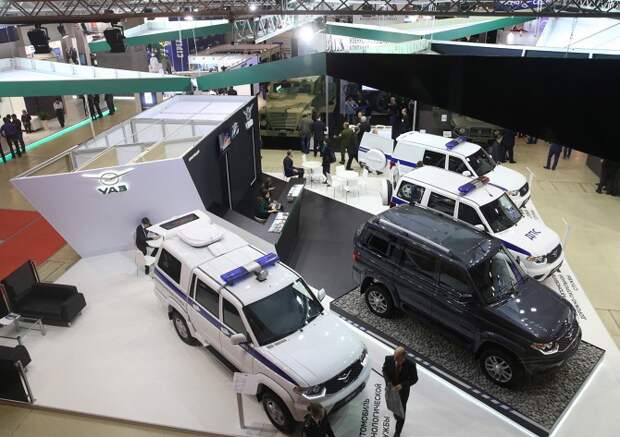 Полицейские внедорожники "Патриот" на стенде Ульяновского автозавода (УАЗ)