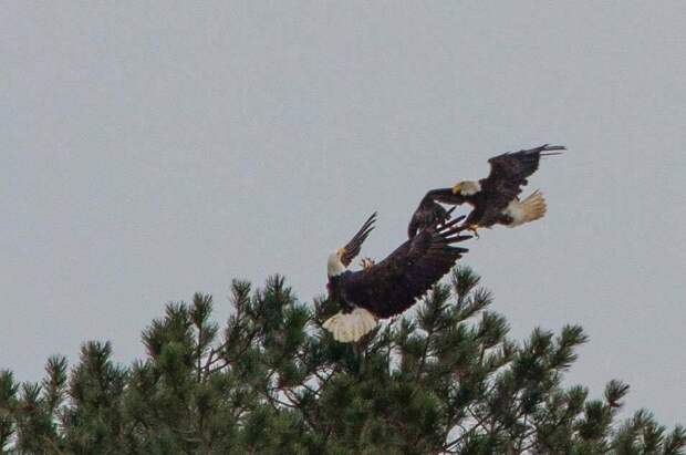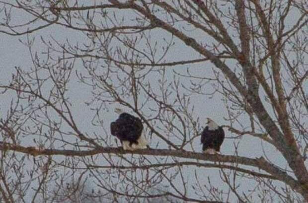 Самец белоголового орлана, который преданно ждал свою спутницу все это время у дерева рядом с больницей.